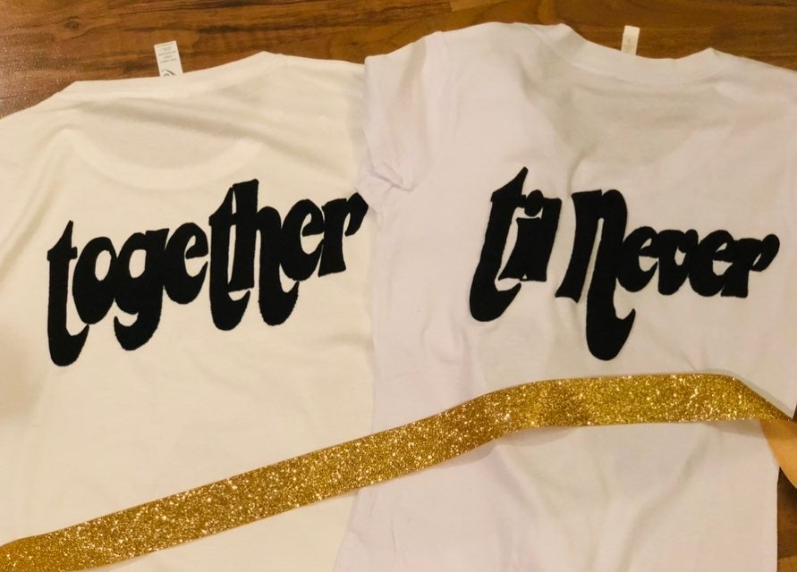 100% cotton T shirt gold foil lettering… Black foam vinyl