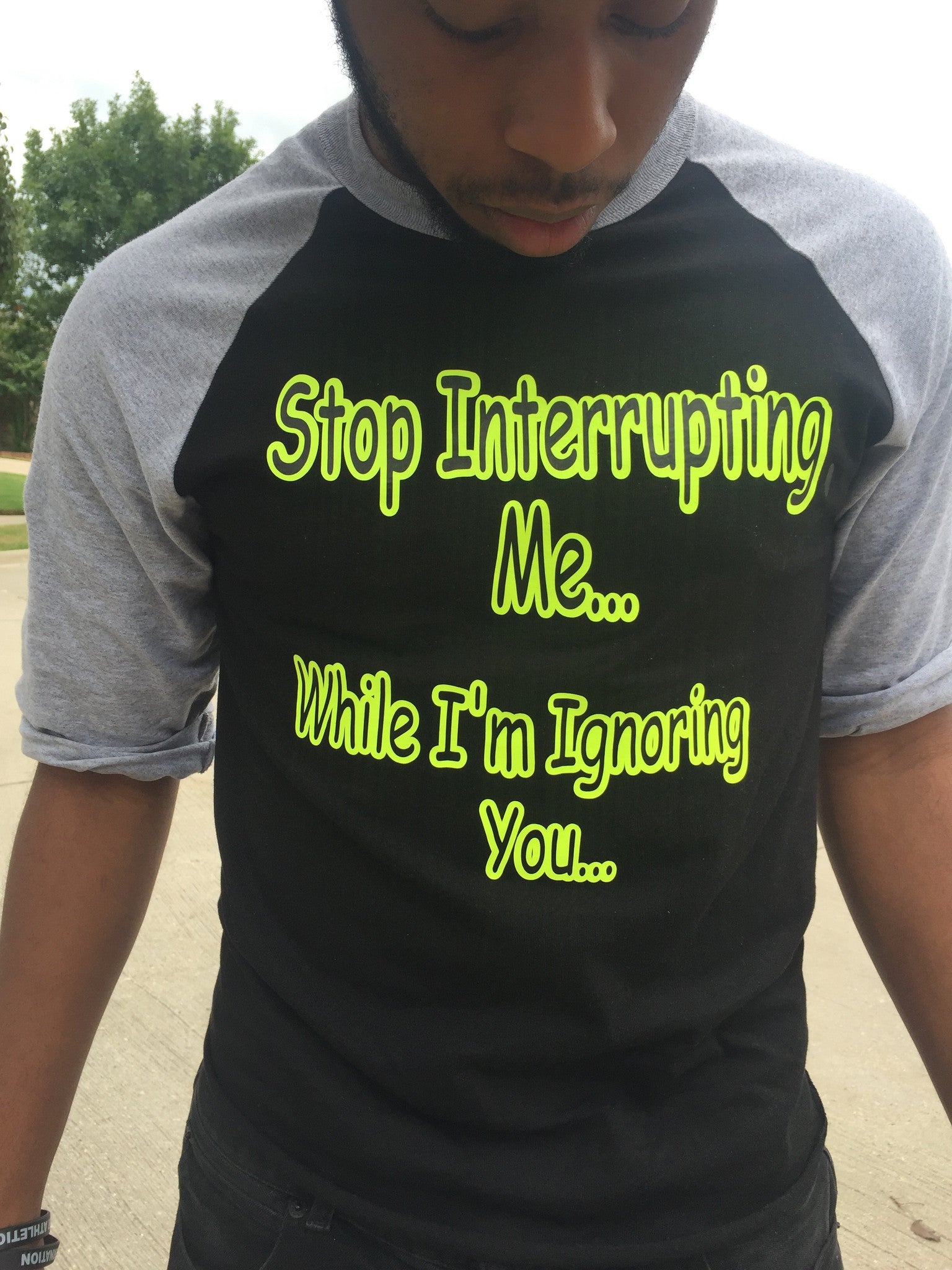 base ball style t shirt ....Stop Interrupting Me.... While I'm Ignoring you....