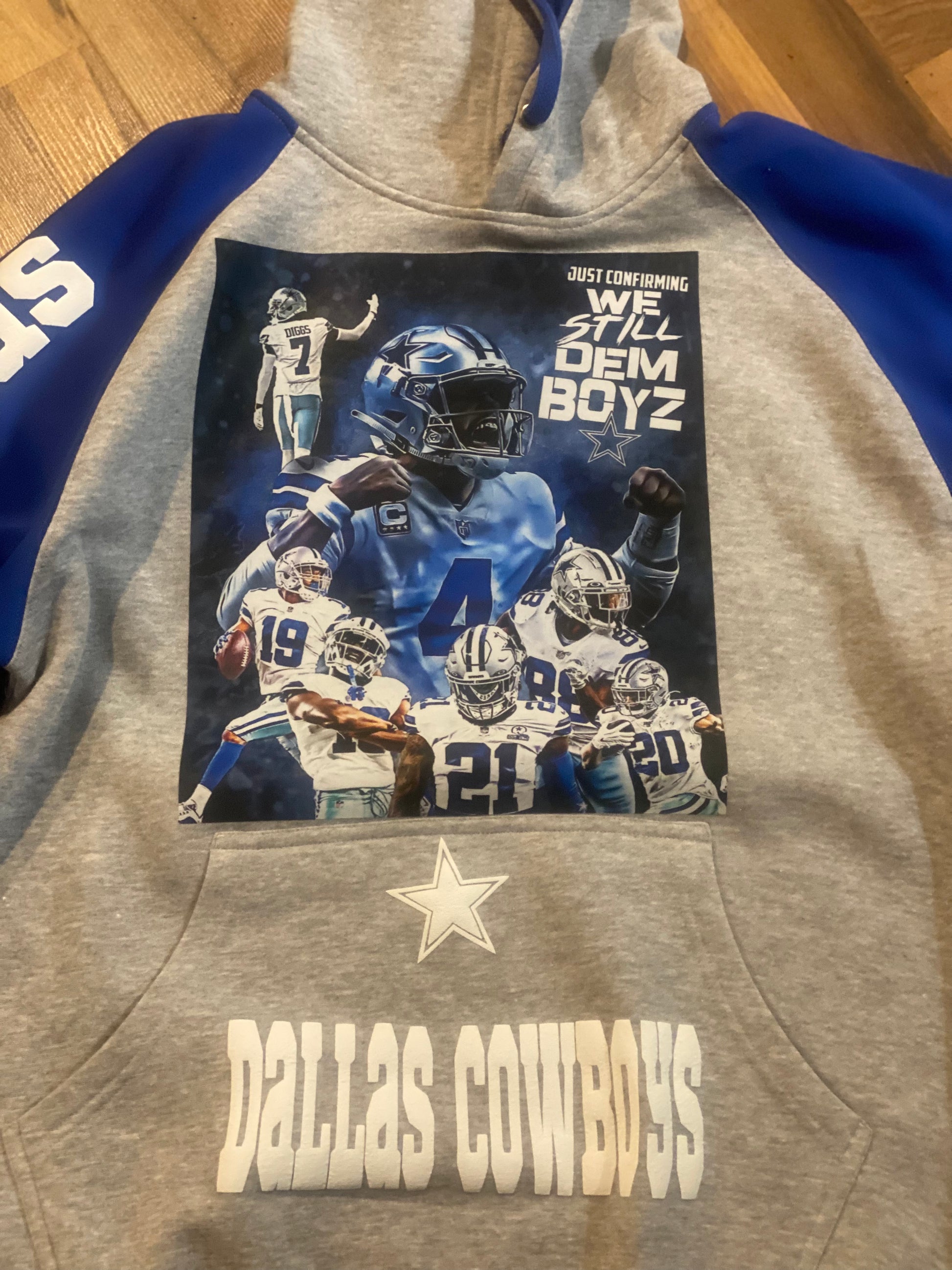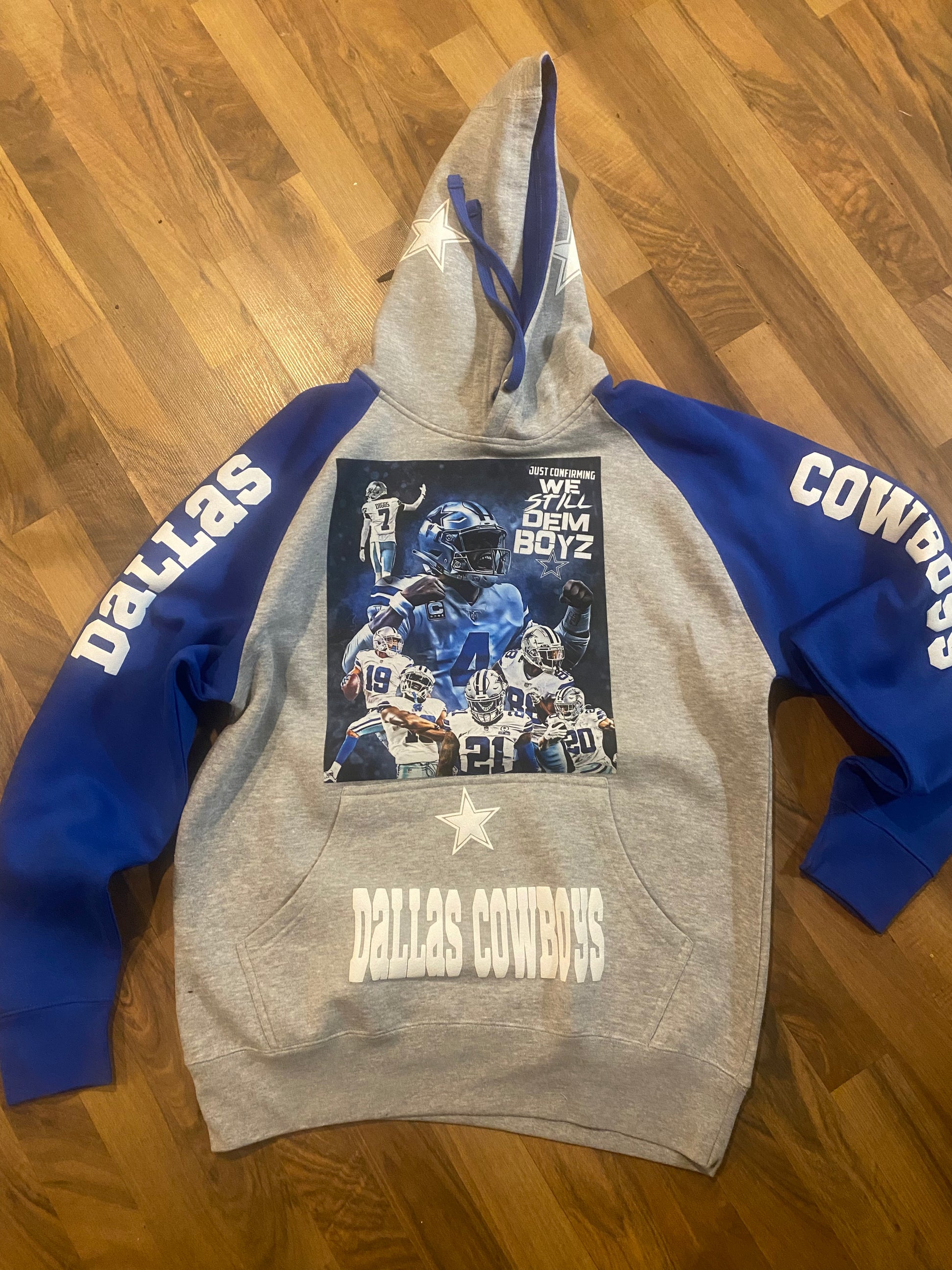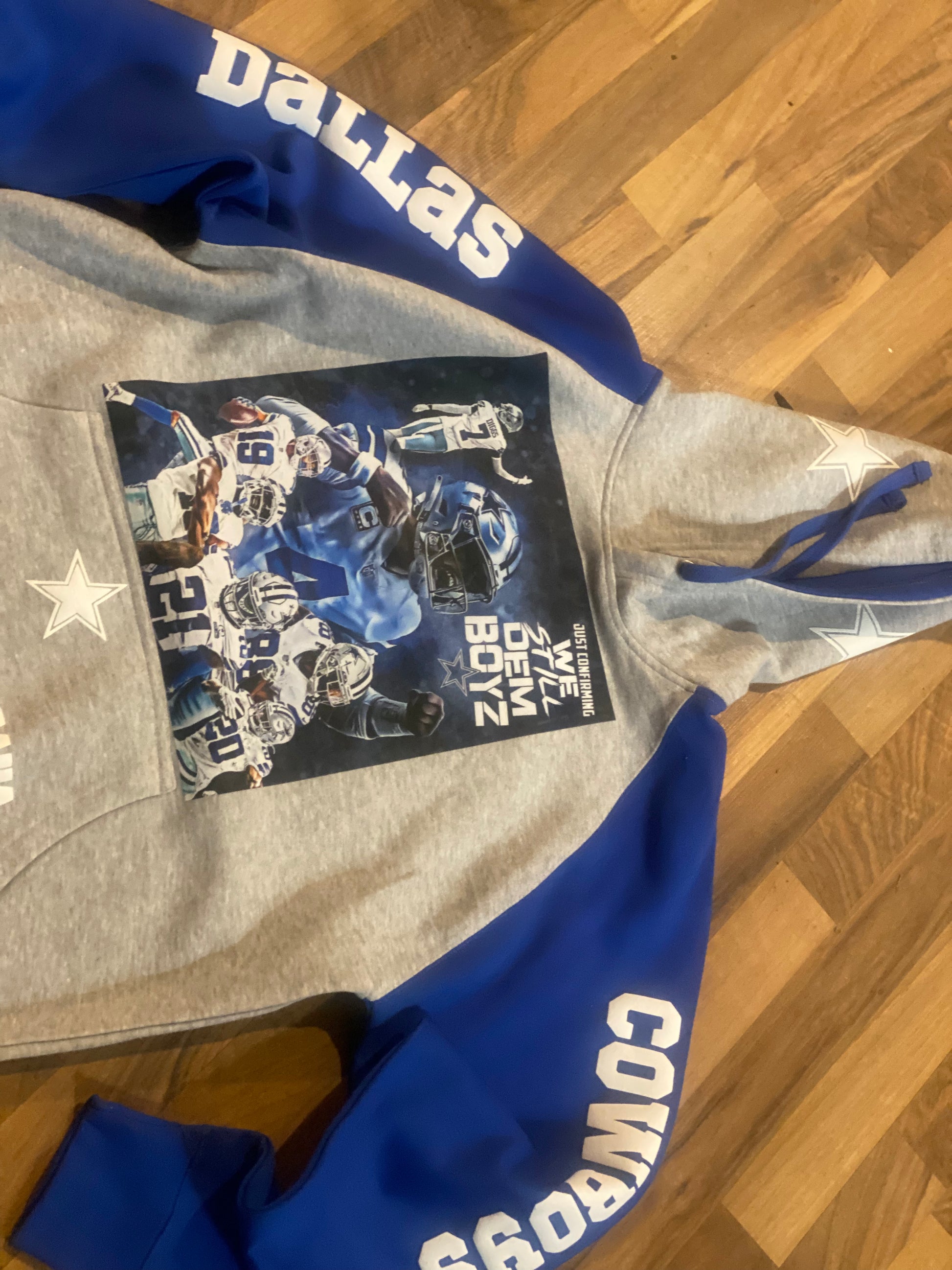 100% cotton, two-tone hoodie, blue and gray one size is up to 2X